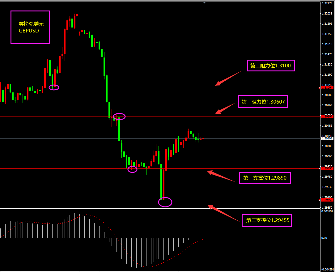 趋势分析:昨日美指冲高利空英镑。此外英镑被降息情绪笼罩。