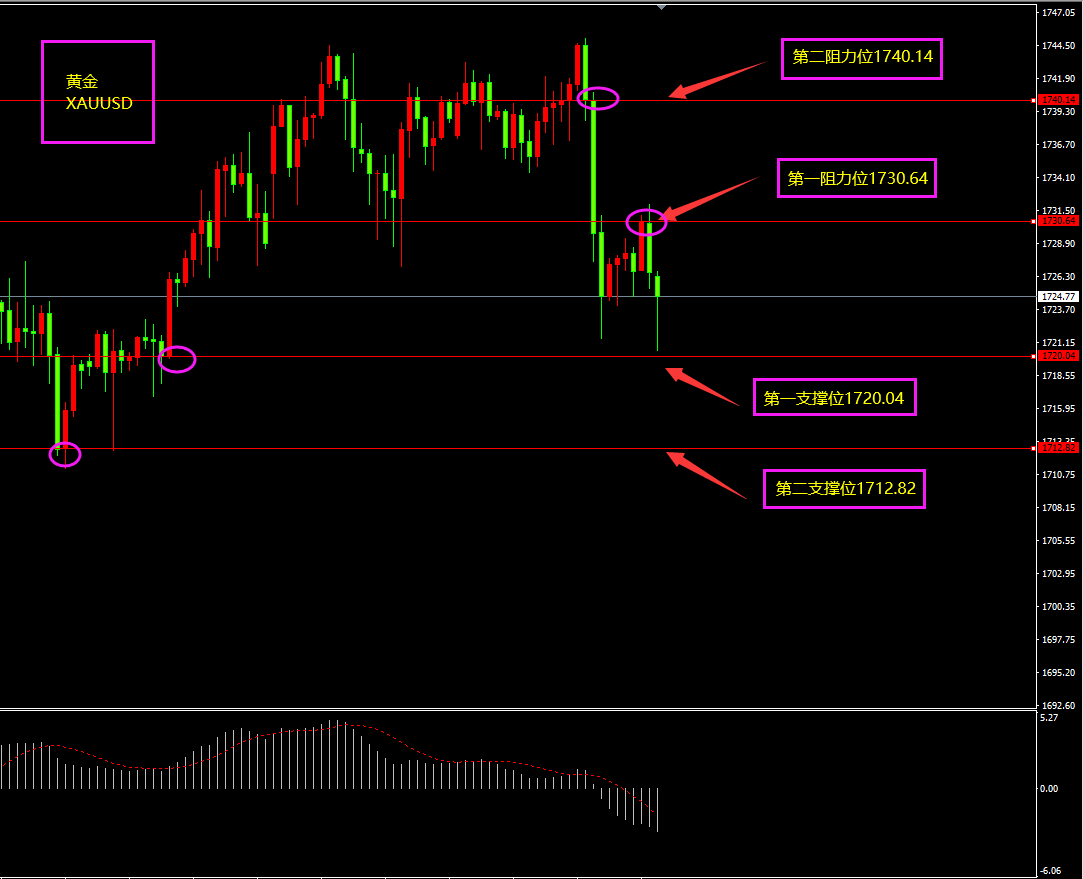 策略分析:第一、二支撑位附近轻仓看多,如有大阴线跌破第二支撑则转为观望。